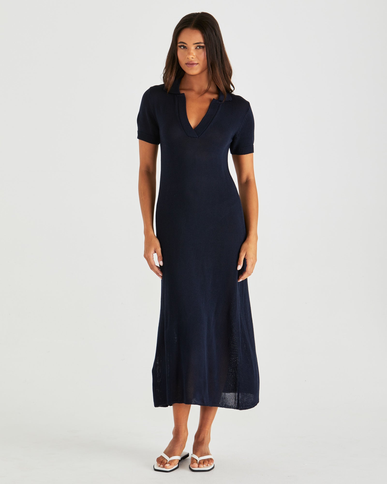 Abbie Knit Polo Dress - Navy