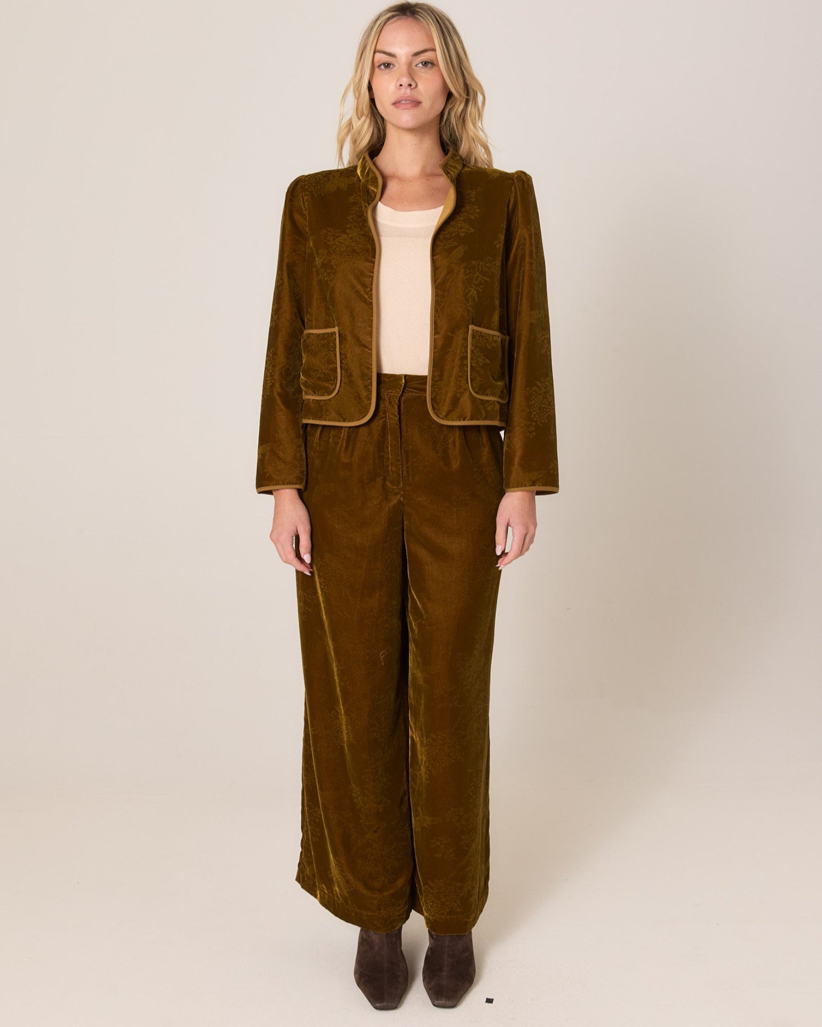 The Intricate Pant offers a polished silhouette with comfort at its core. Featuring a functional front fly, printed velvet fabrication, and a comfortable fit, this piece is finished with an elastic section at the back waist and a regular fit. Perfect as a transeasonal wardrobe staple with a chic, elevated feel.