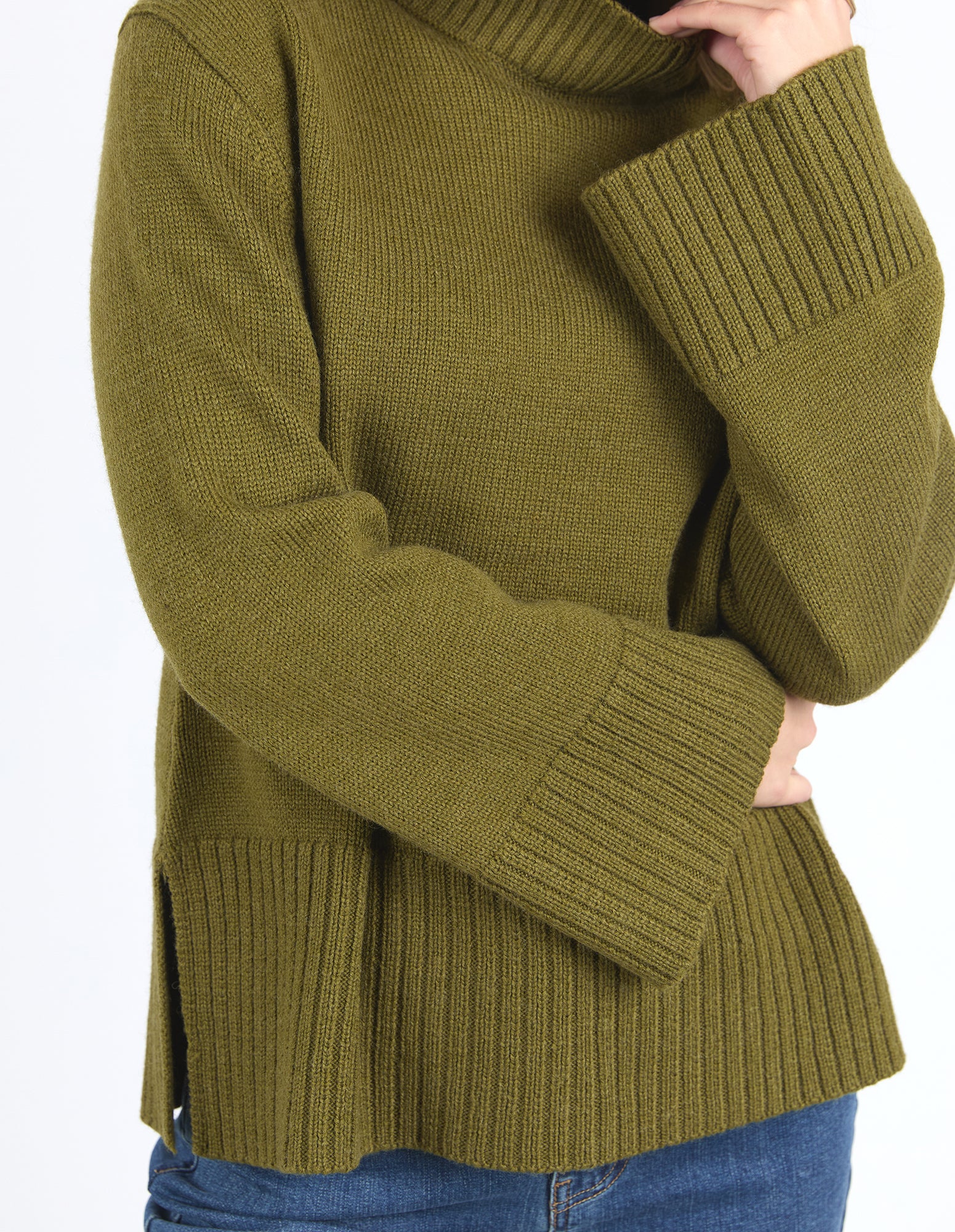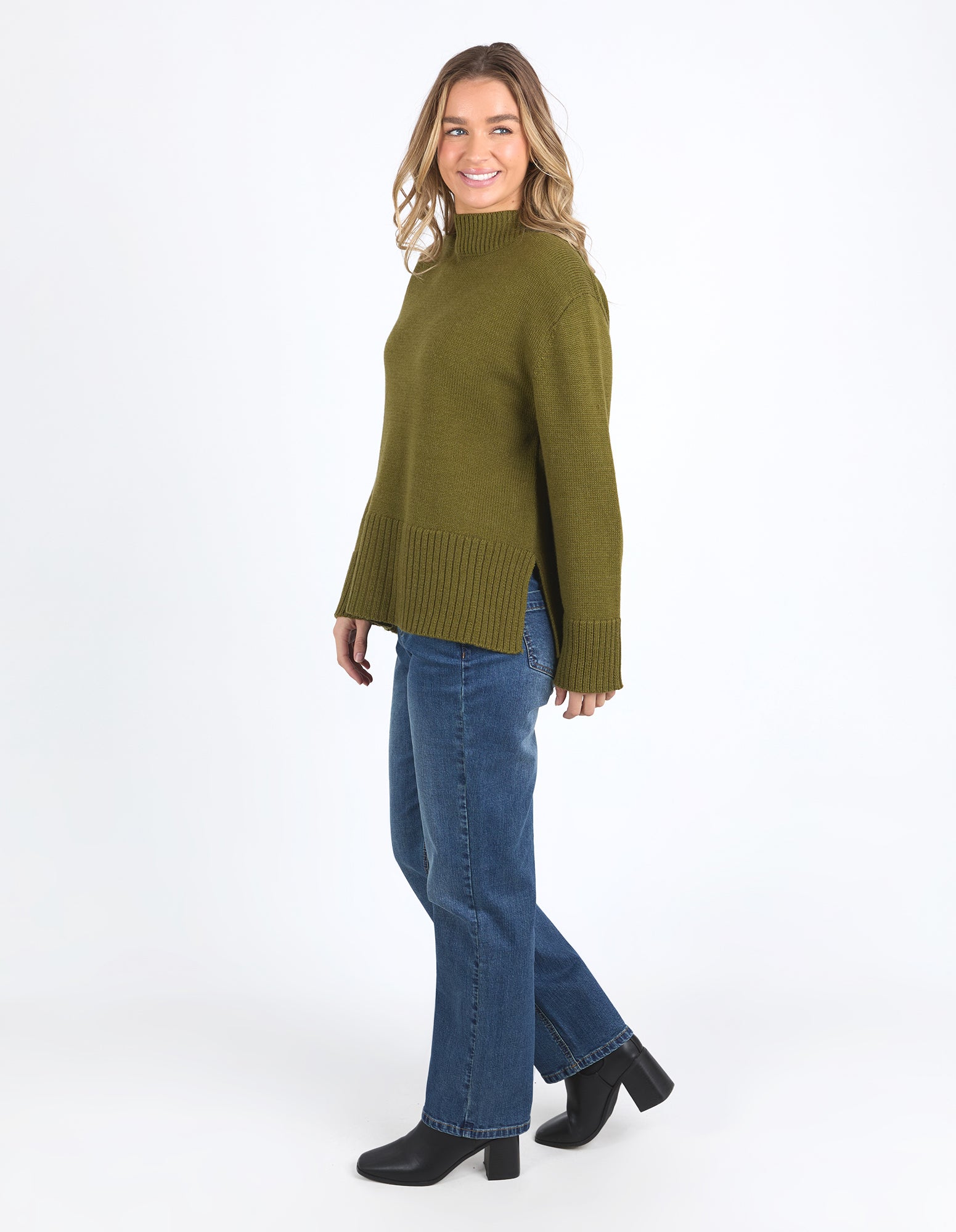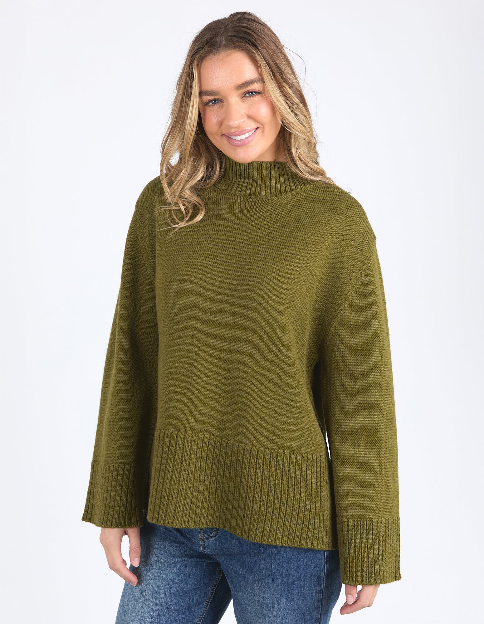Stay chic and cozy with the Foxwood Jude Knit Jumper in olive.