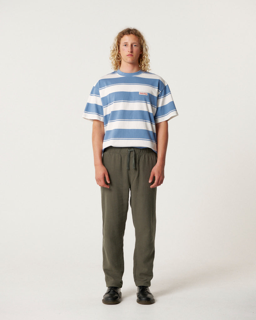 The Cruiser Linen Pant is laid-back done right. Relaxed through the leg with a slight taper for a clean, modern shape. Elastic waist and drawcord keep things comfy, while the patch back pocket adds a bit of function to the form. It’s a tried-and-tested Critical Slide fit—take your regular size and cruise easy.