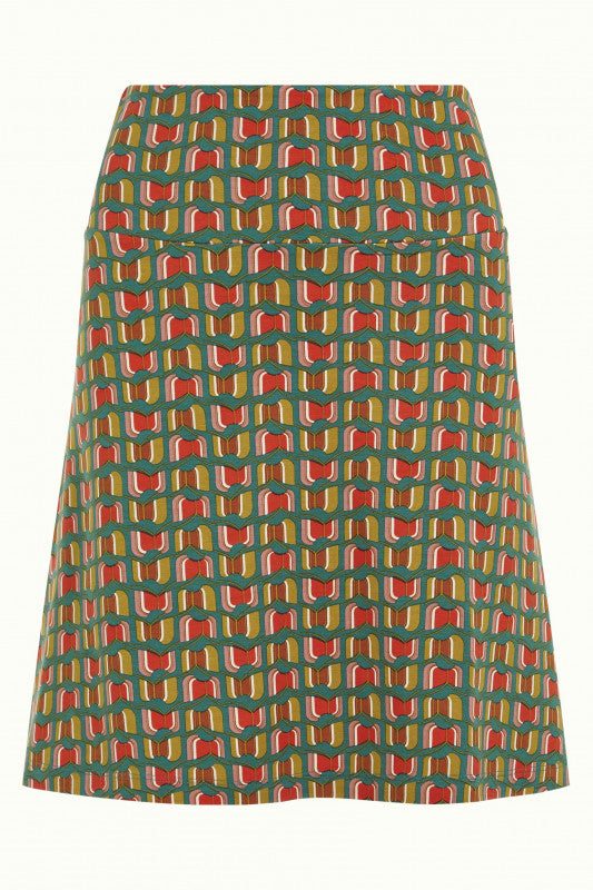 The King Louie Border Skirt is just fabulous. The A-line silhouette flatters any figure while the wide elastic waistband ensures a comfortable fit. Made with stretch jersey fabric, this skirt moves with you.
