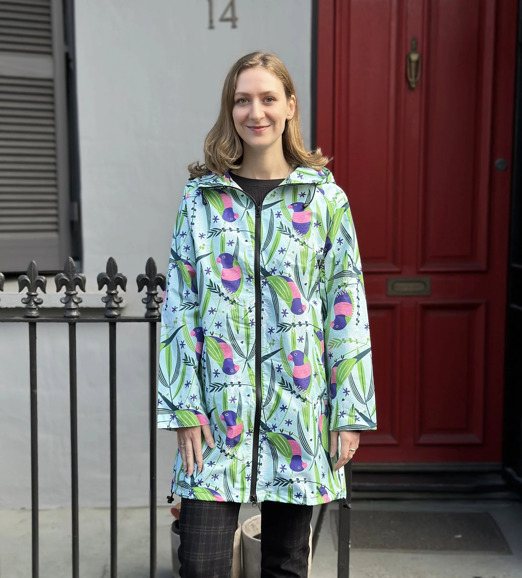 Each raincoat is water resistant and features a hood and adjustable pull toggles through the bottom to help keep you nice and dry.