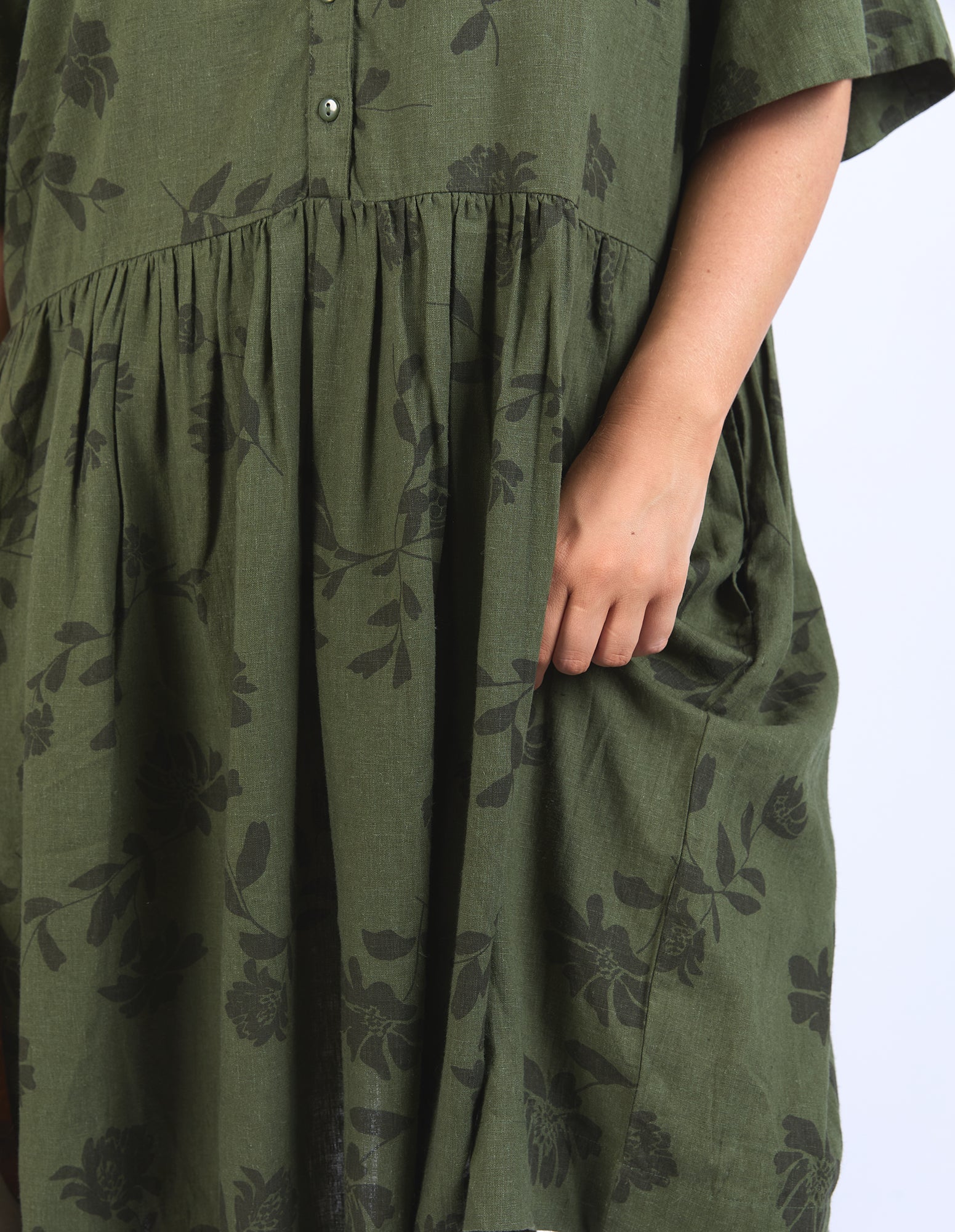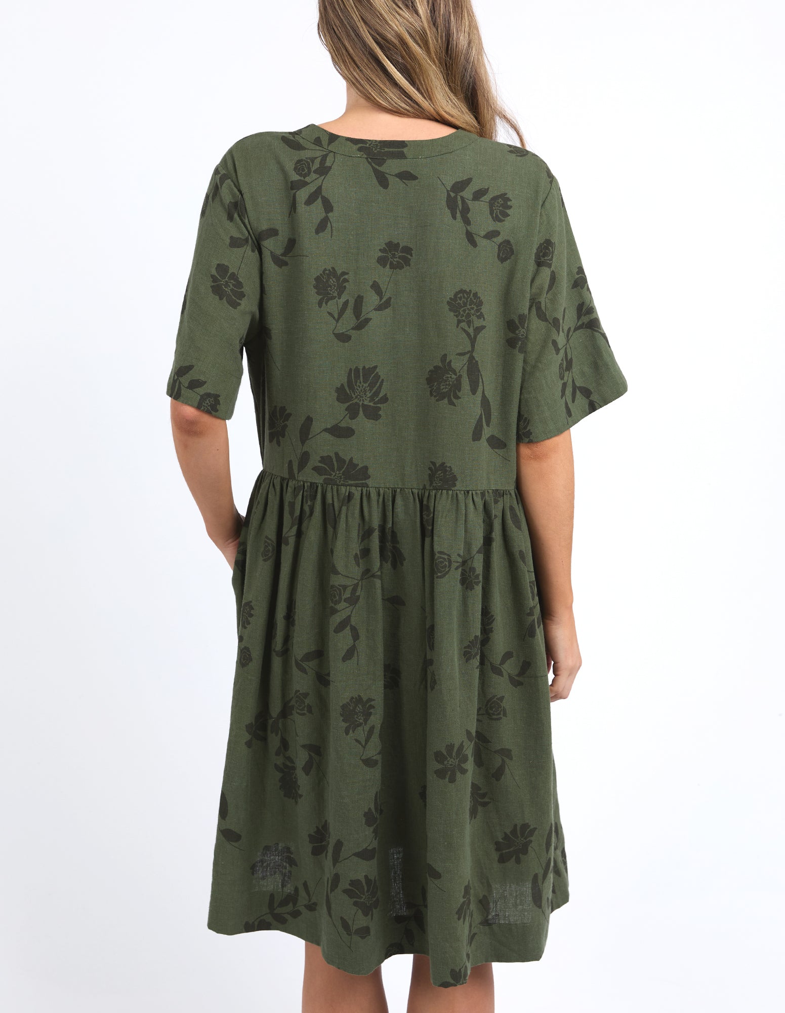 The Bramble Dress in Clover is a versatile piece with a transitional style.