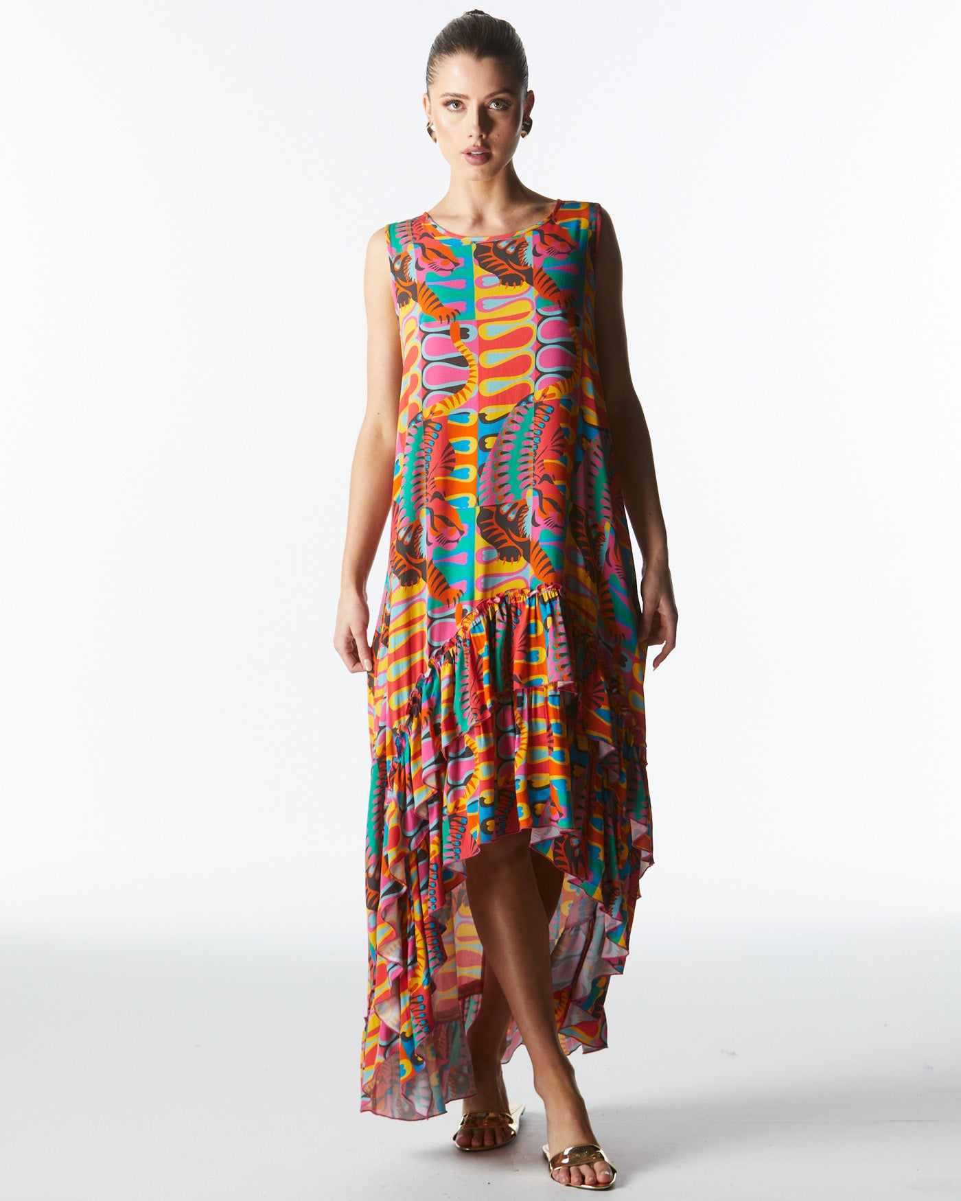 Be the belle of the ball in the Lady Godiva Ruffle Dress!