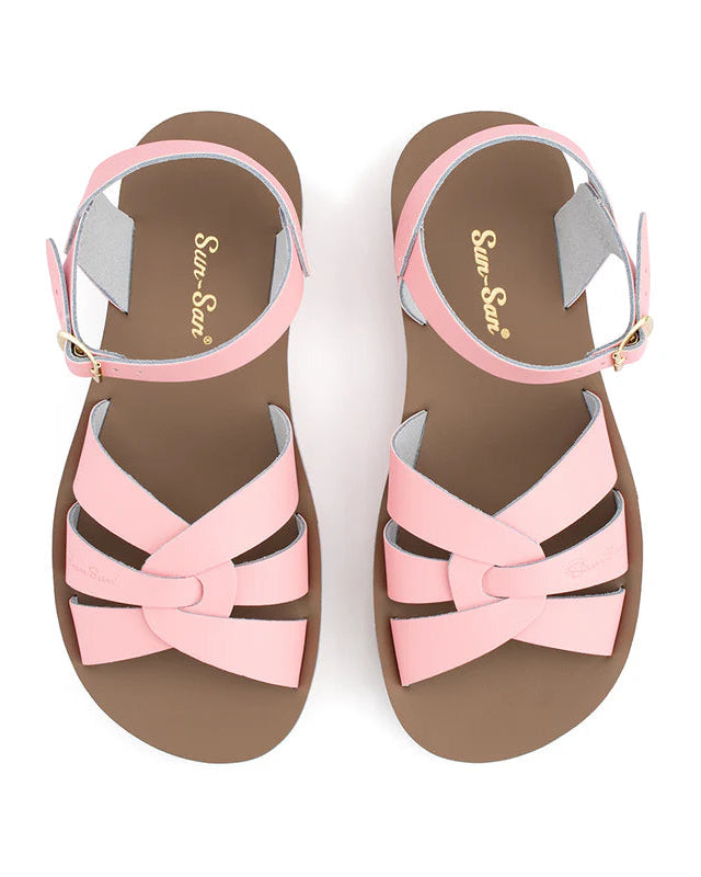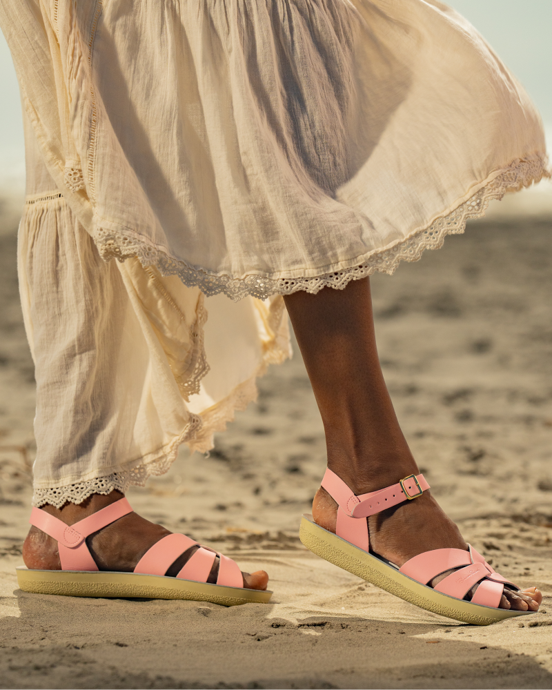 The Swimmer, now available in adult sizes, boasts a narrower fit than some other styles and comes with a lightweight, cushioned urethane sole. Rustproof brass buckles and durable, water-friendly leather make them ideal to last not only all summer long, but with care, for years to come, too. Easy to clean, hard to scuff, dress them up or down.