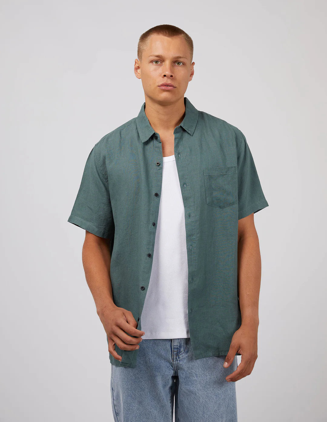 Stay cool and stylish this summer with our Linen SS Shirt in Pine.