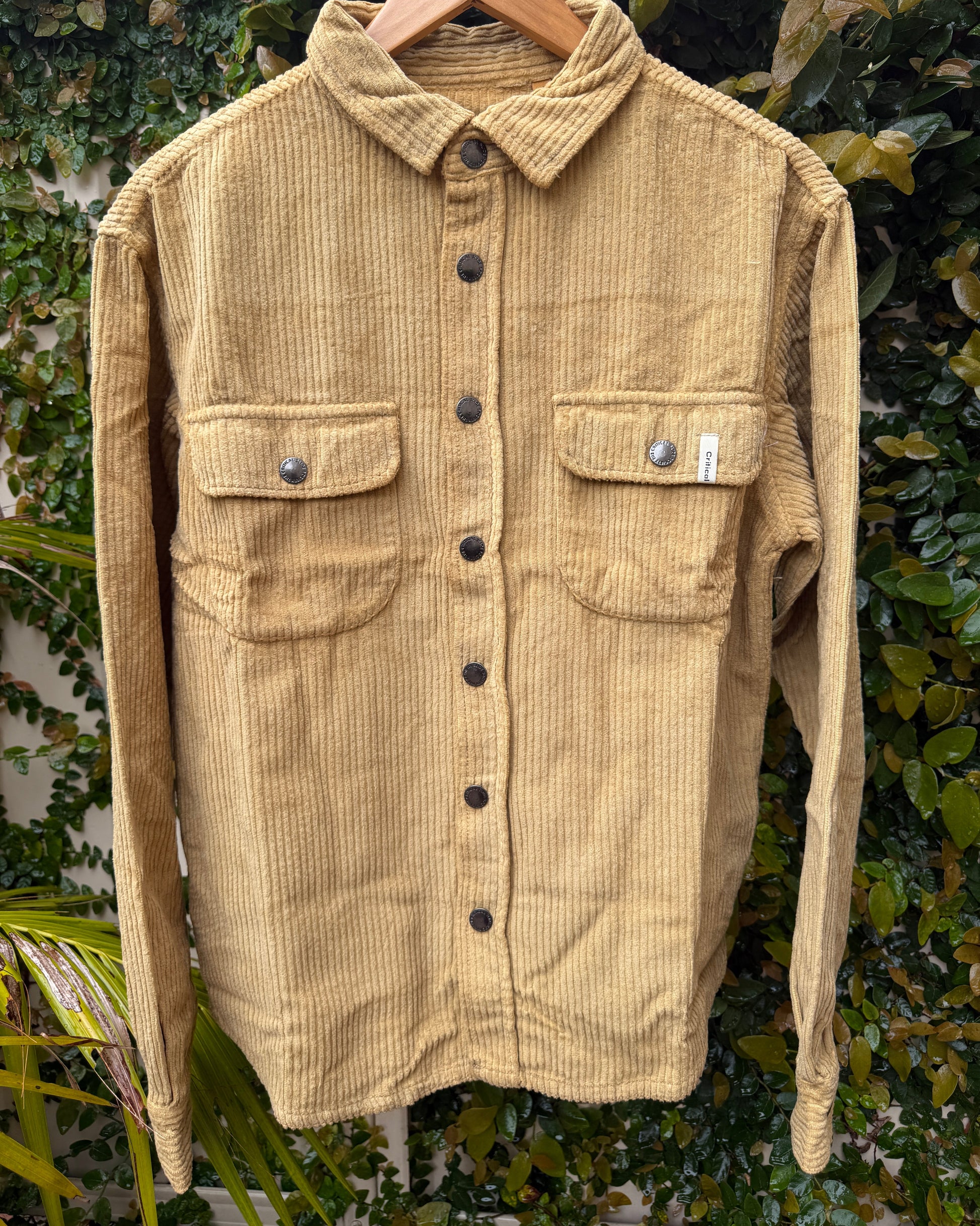 Slightly oversized and roomy, this one’s built for easy layering over tees or knits. Made from soft 8-wale cord and finished with snap buttons for a touch of utility, it’s a versatile piece that works year-round. Take your regular size for the intended fit.