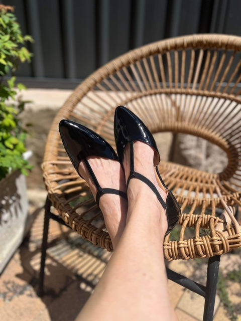 Saddie Sandal - Black Patent Leather