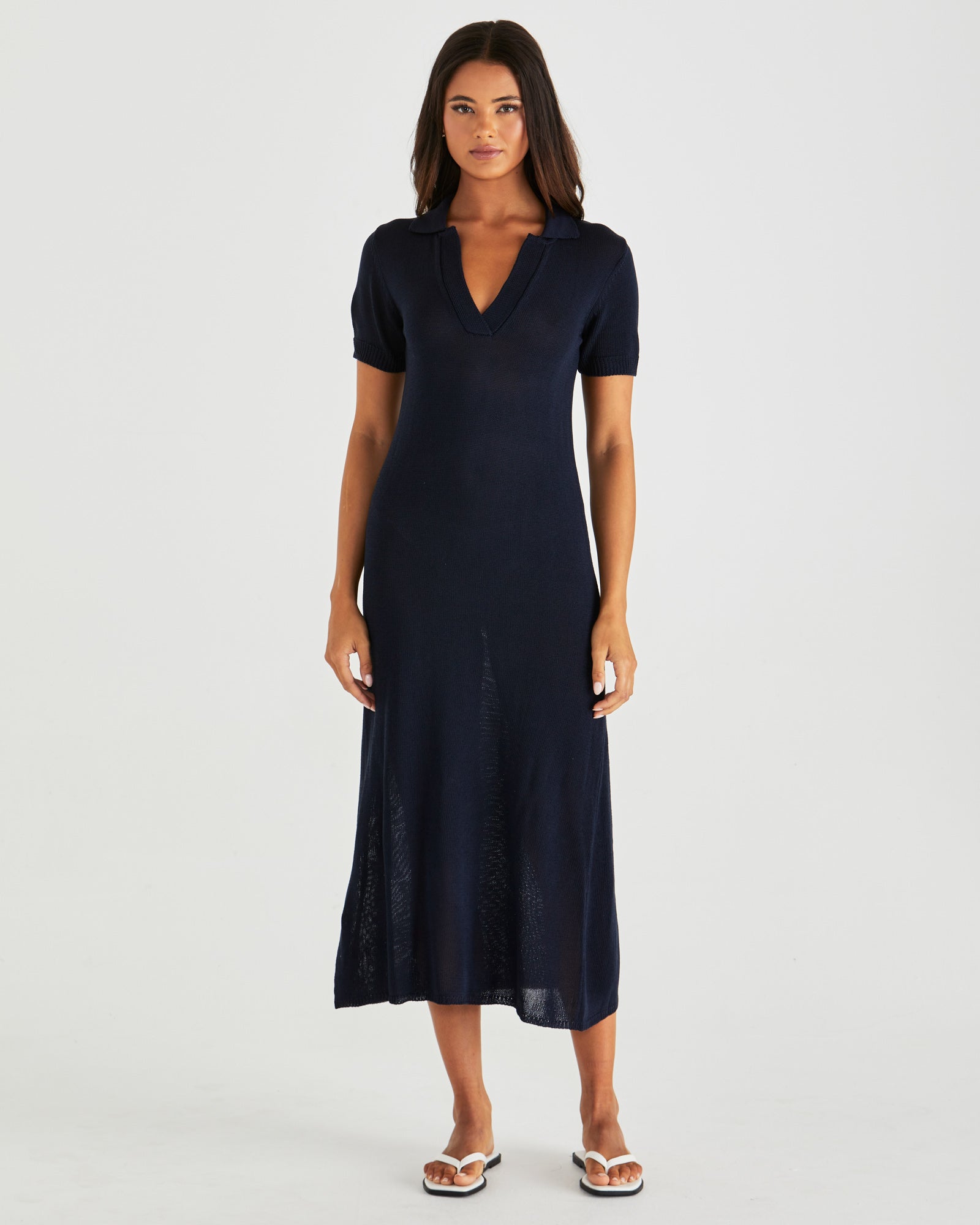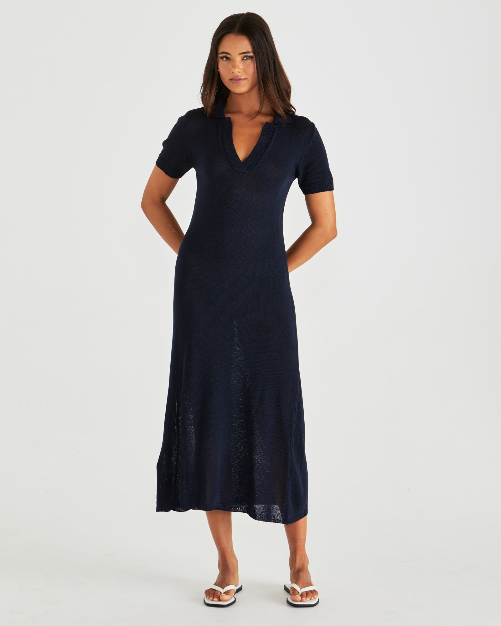 The Abbie Knit Polo Dress is an easy, on-trend piece made for warm days. With its soft knit feel and classic polo collar, it brings sporty vibes with an elevated twist. Cool, comfy, and not sheer—this dress is all about that laid-back summer energy.