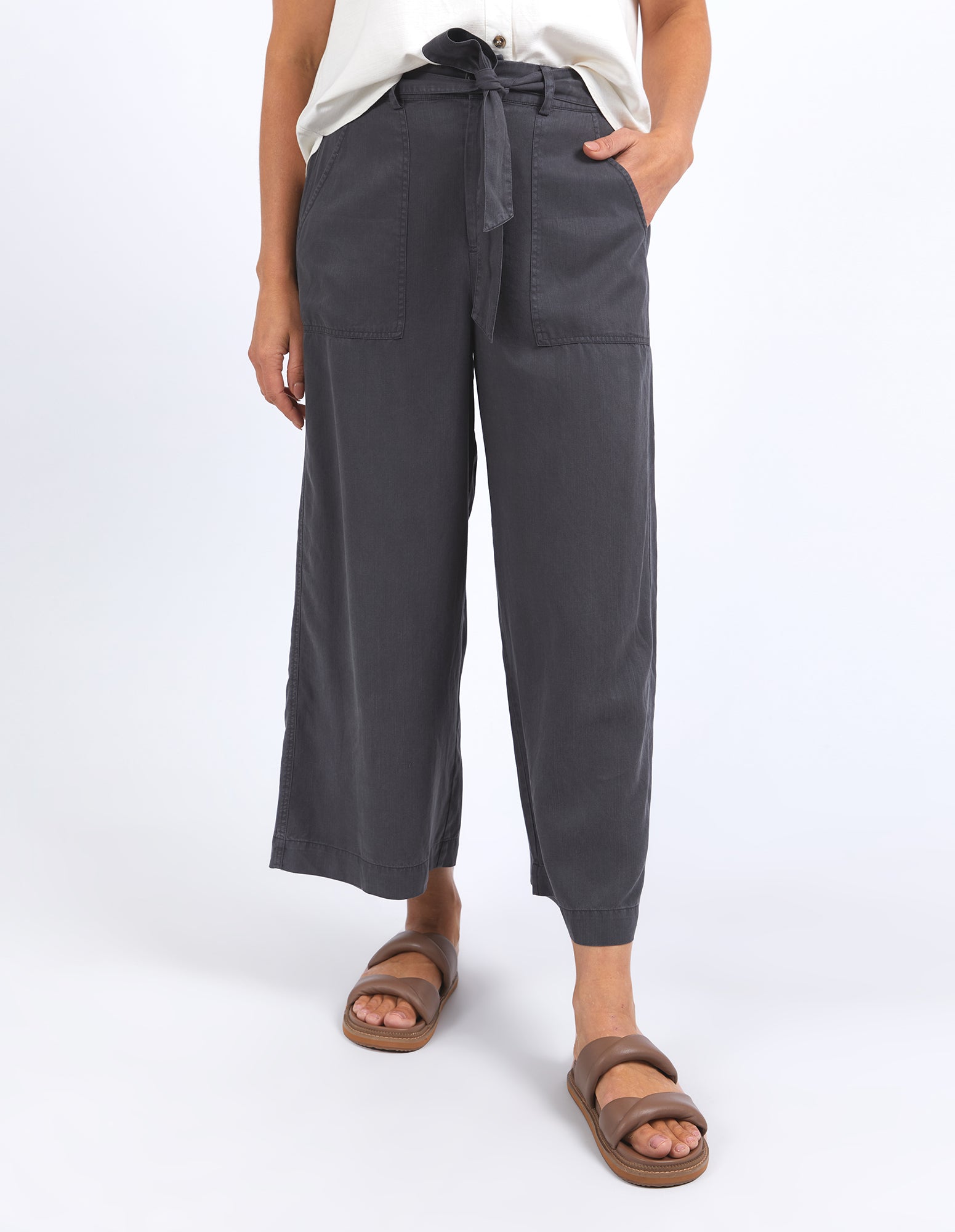 Made from a blend of linen and lyocell, these pants offer a satin-soft touch and a flattering fit. Featuring front patch pockets, a waist tie, and a cropped length, these versatile pants are perfect for everyday wear.