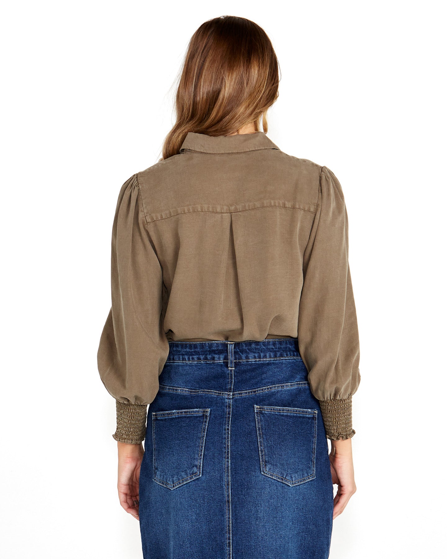 Introducing our Charity Gathered Sleeve Shirt in Khaki.