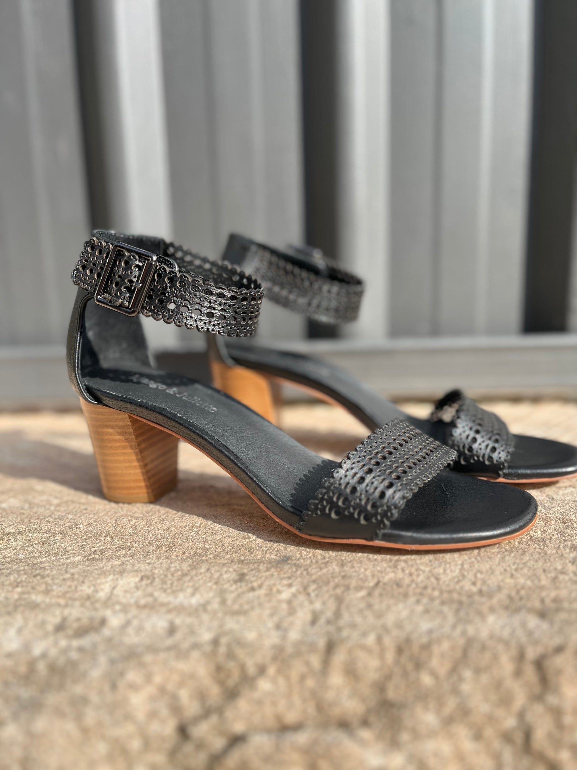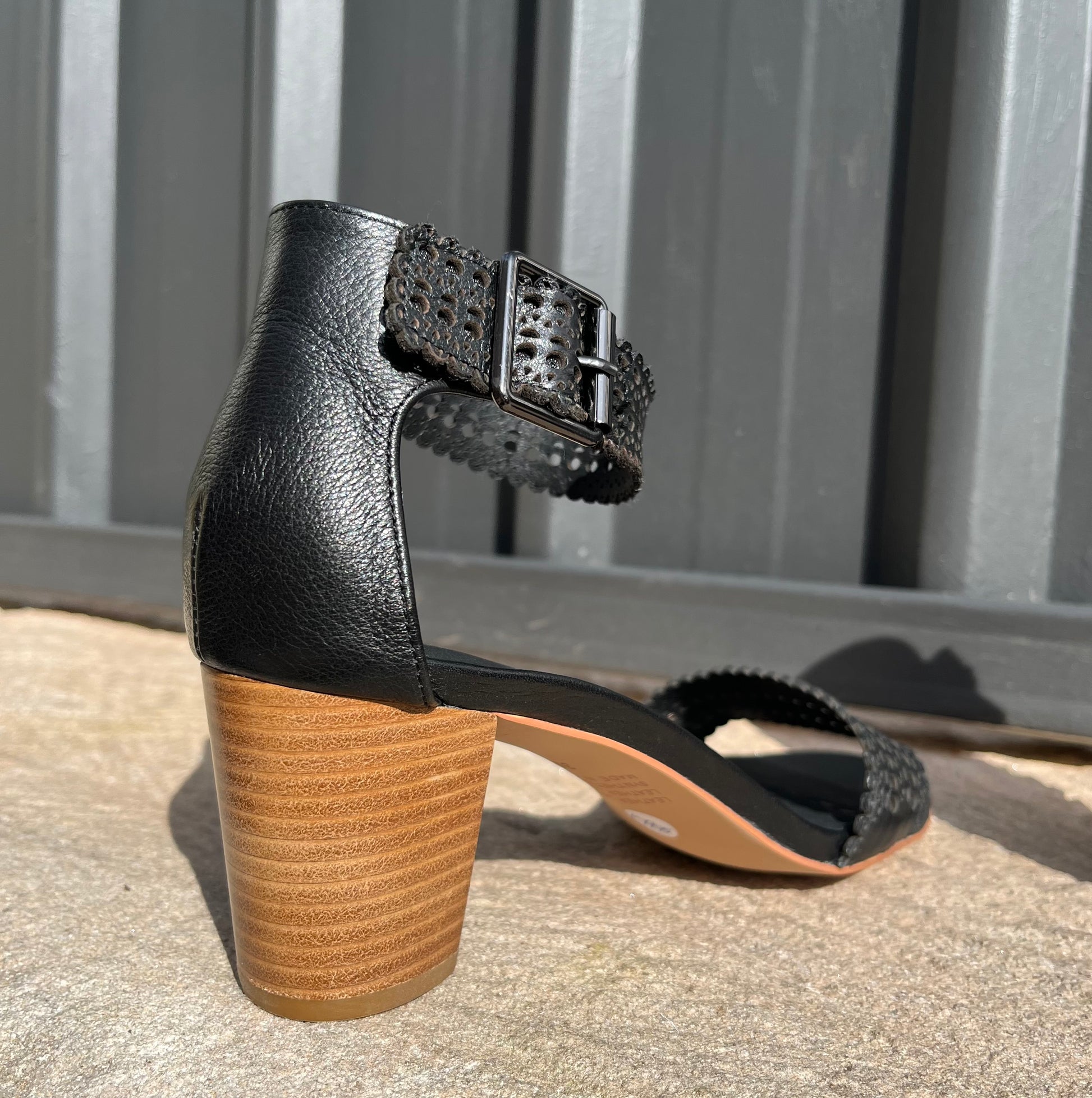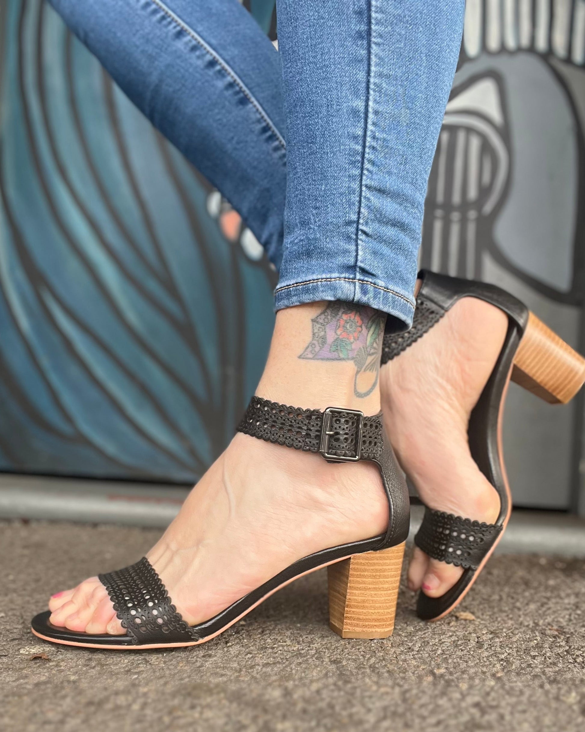 Laser-cut leather and stacked block heels take casual looks to new heights. Pair with tailored pieces or a simple dress.