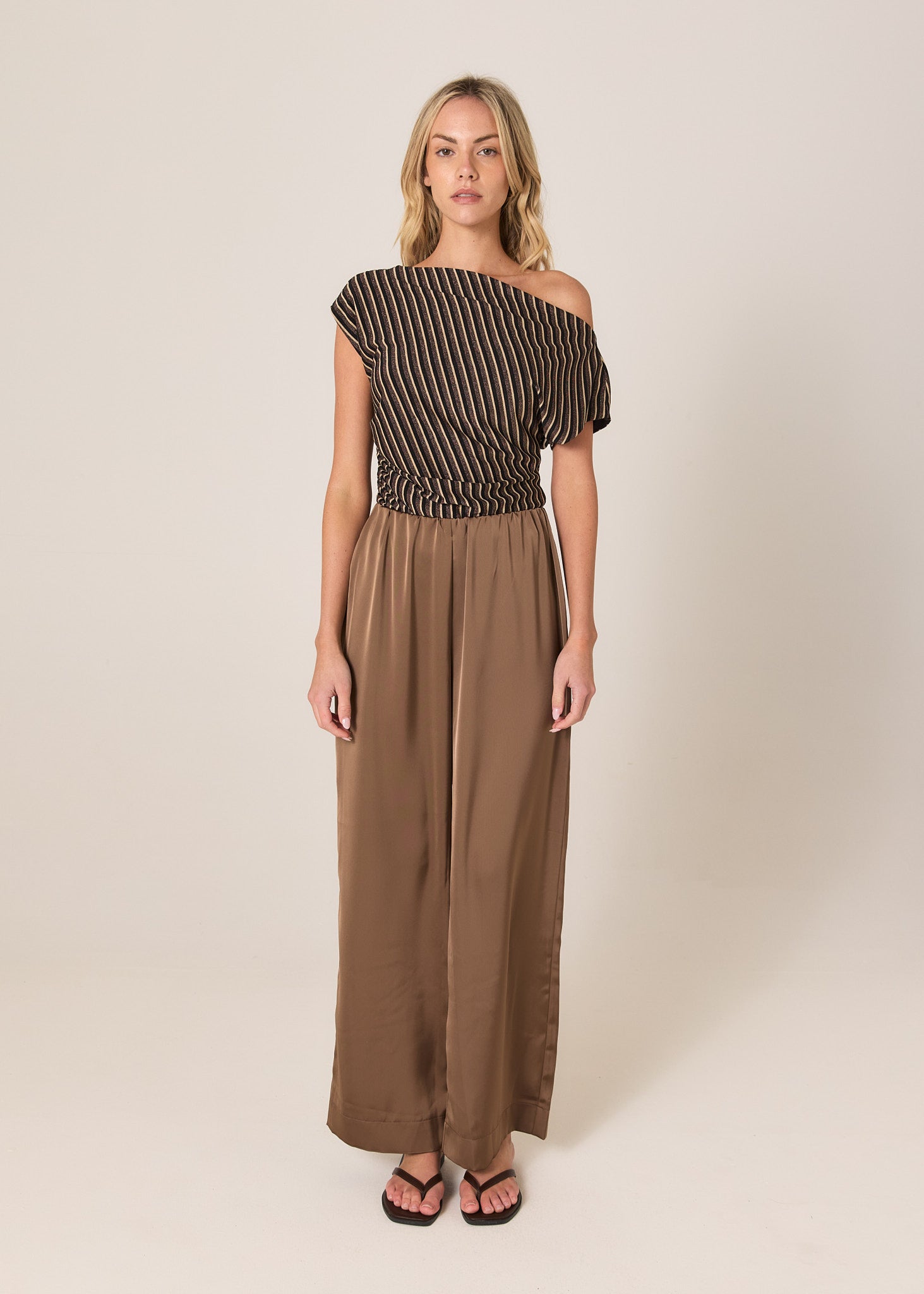 The Dahlia Satin Pant is a refined wide-leg silhouette with an elevated satin finish. Designed with an elasticated waistband for effortless, pull-on comfort. The fluid drape creates an elegant, elongated line. A classic piece that feels polished and sophisticated, day or night.