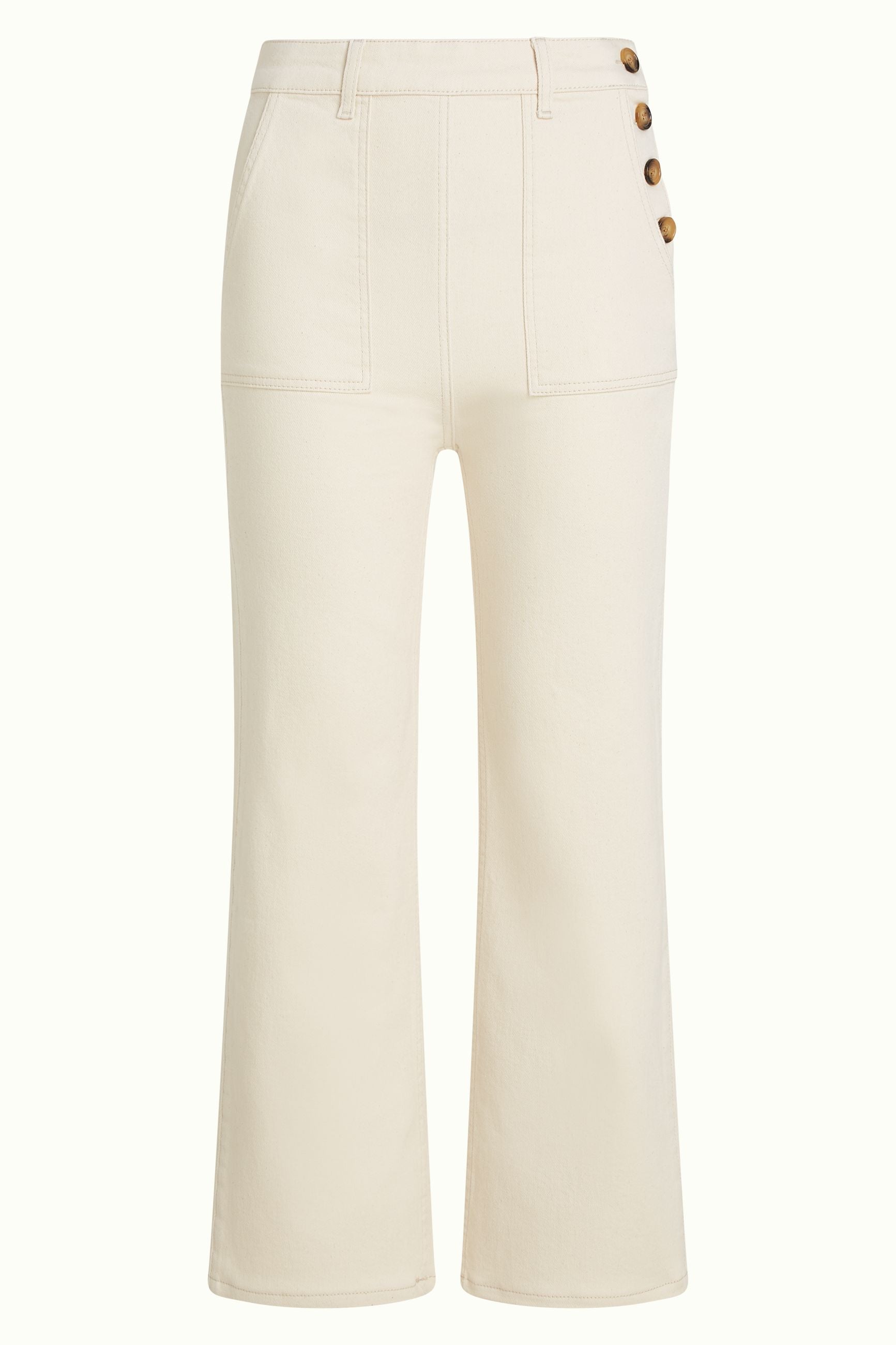 Elevate your denim game with the King Louie Debra Pants. These mid waist jeans feature a side button closure and patch pockets for a sophisticated touch. The straight legs with cuffs add a polished finish. Made with comfort stretch fabric, these pants are perfect for all day wear.