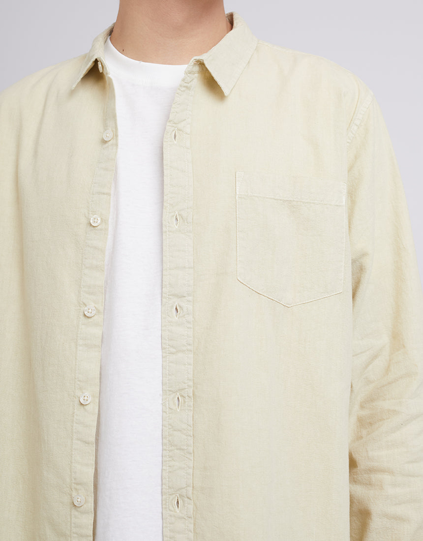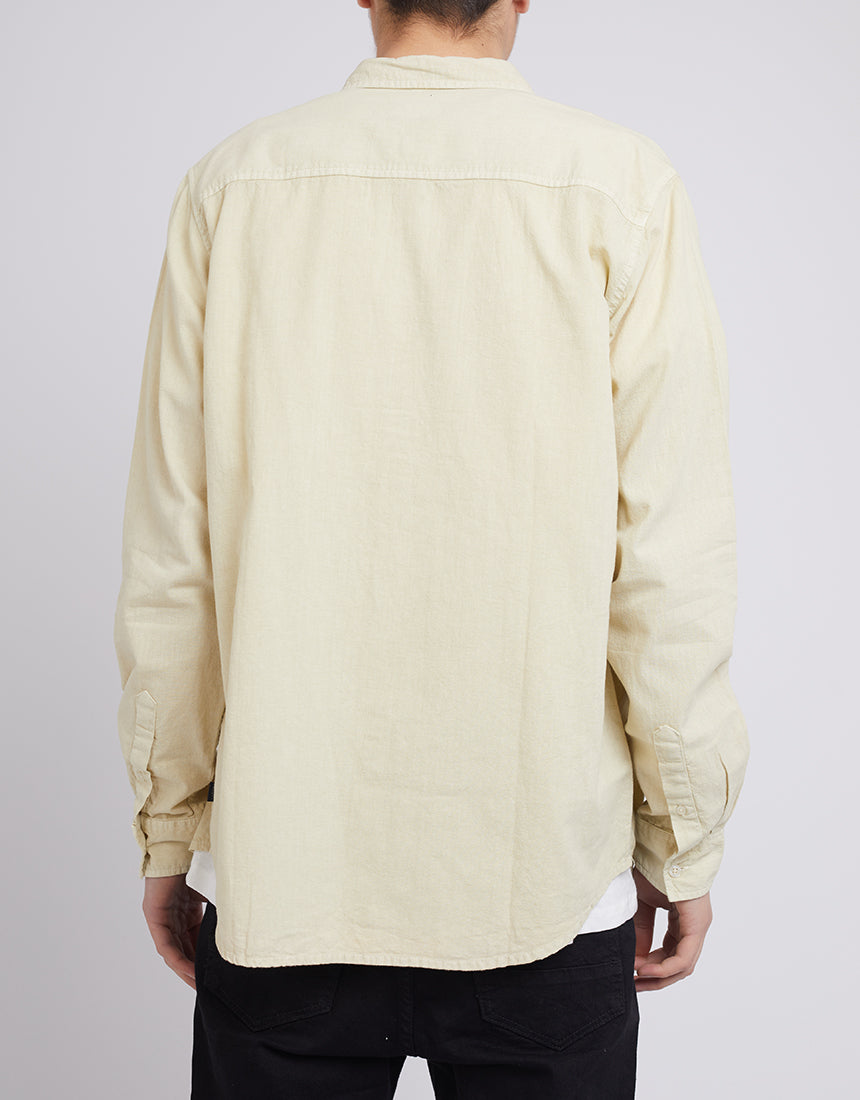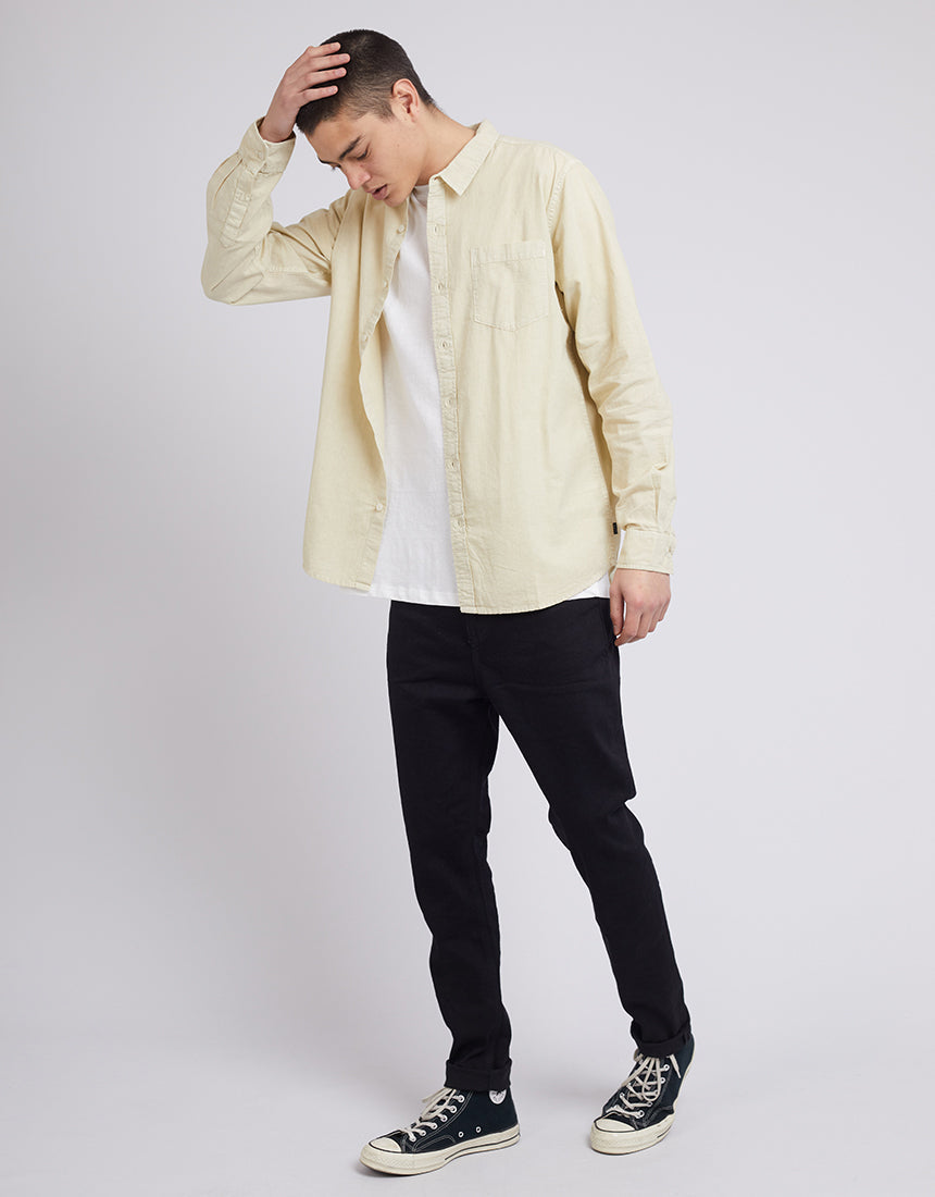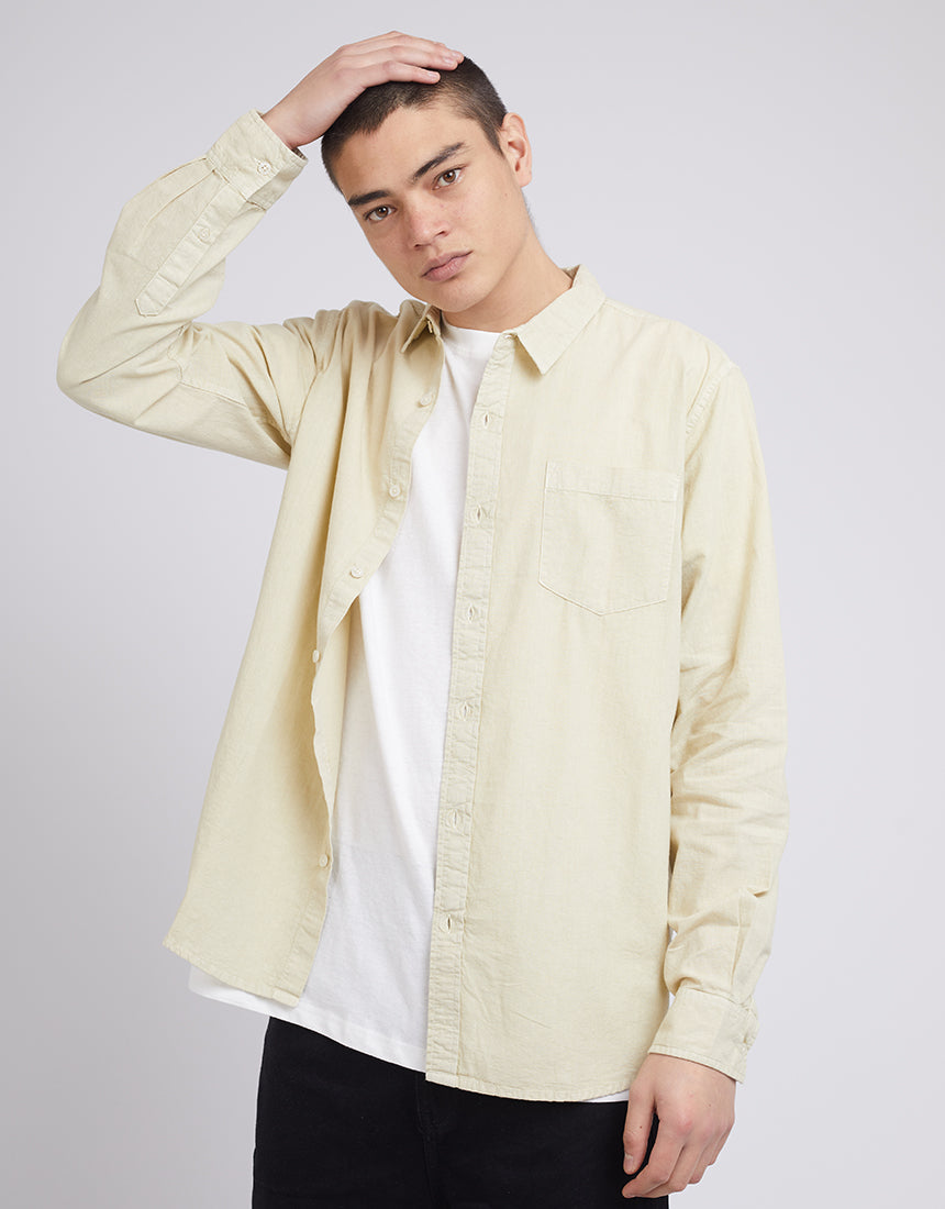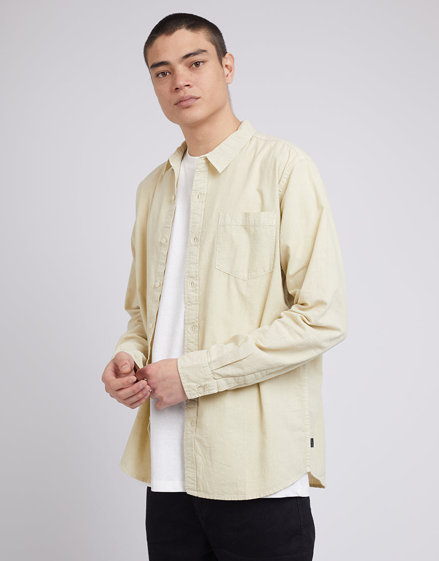This is a standard mens style long sleeve shirt. Good for work with a tie or wear it open over a plain t-shirt for your weekend vibe.