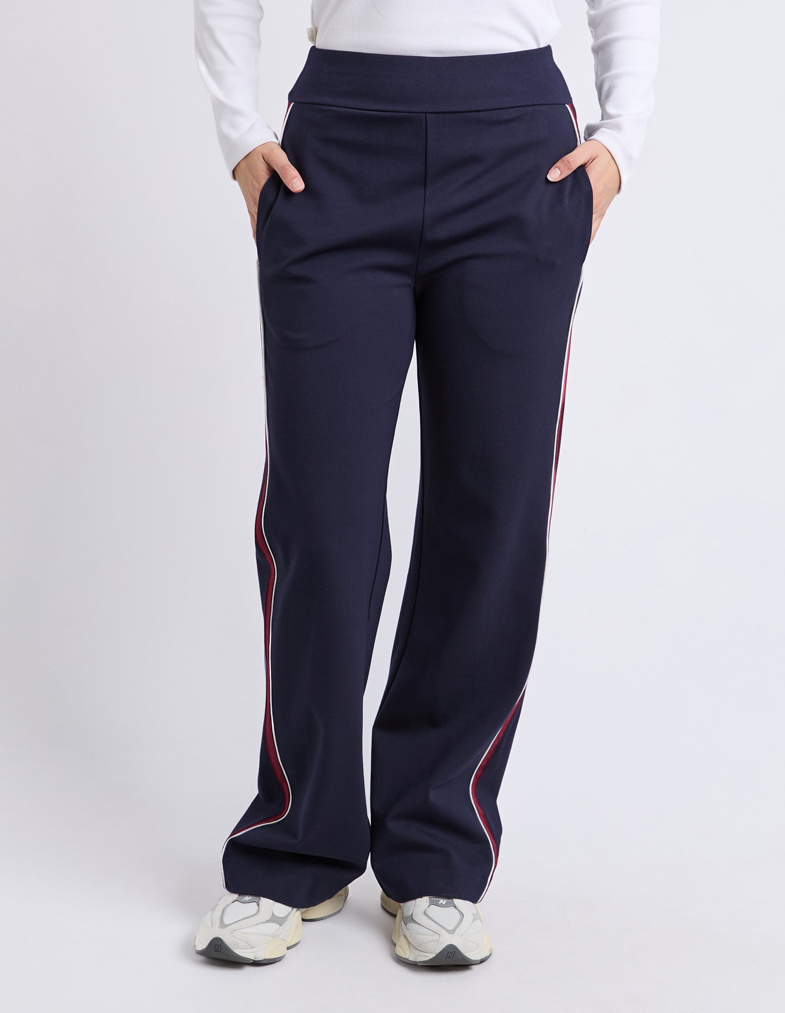 The London Pant brings sporty vibes with an elastic waist and side leg taping. Side pockets add practicality, while the viscose-nylon-elastane blend keeps you comfy all day. Perfect for casual-chic days!