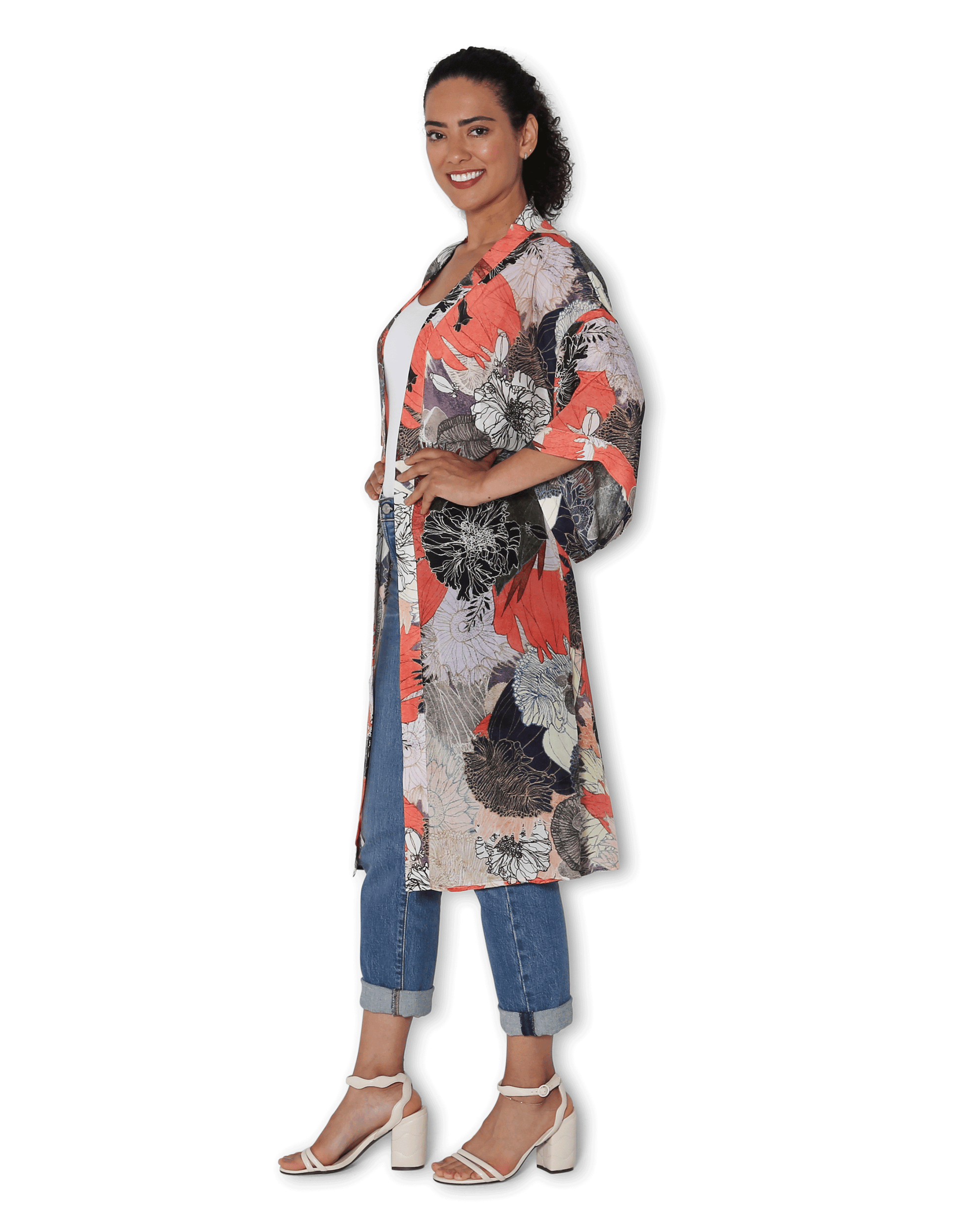 Longline Silk Kimono - Chine Bloom