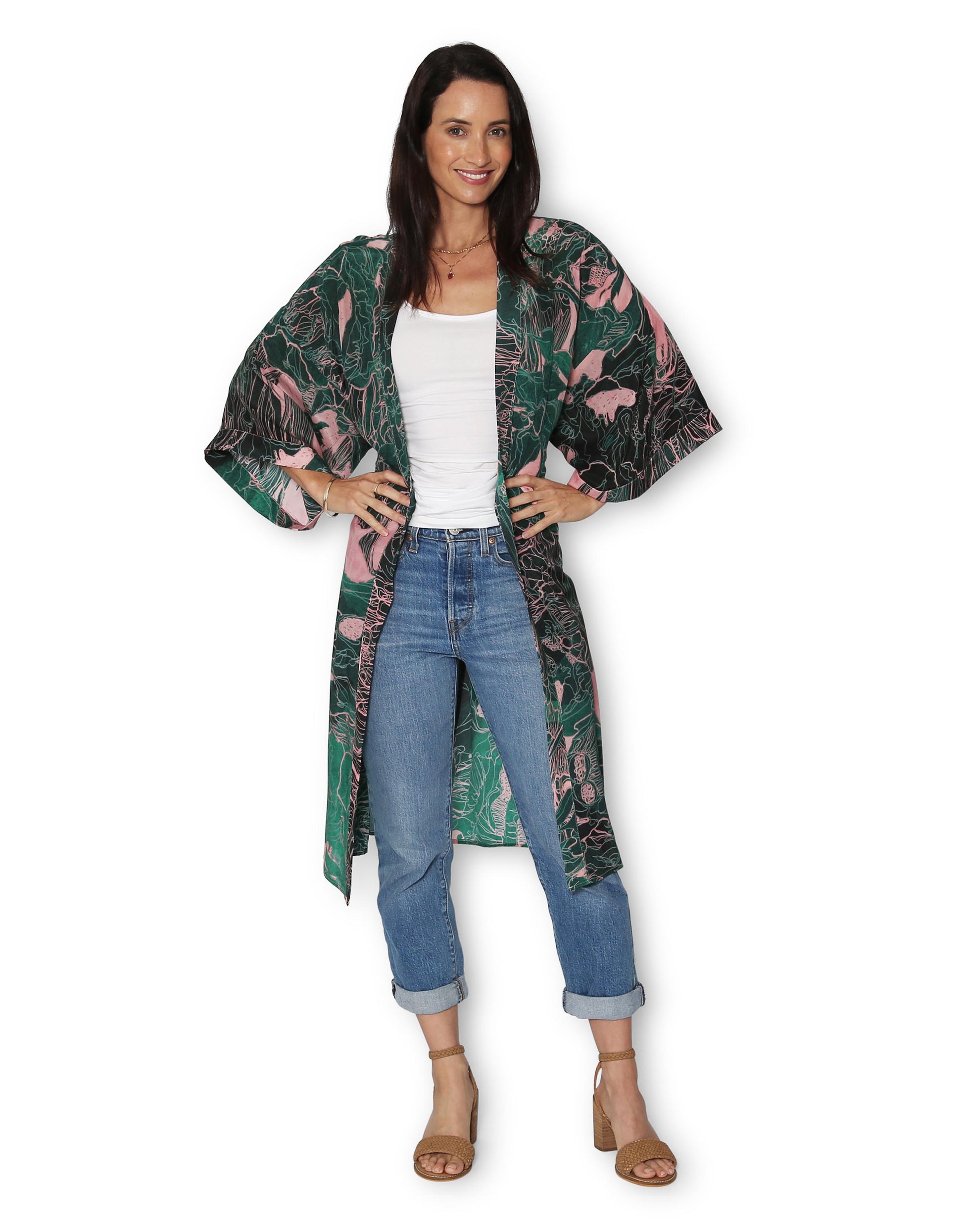 Limited edition artworks printed onto silk and made into stunning Longline Kimonos.