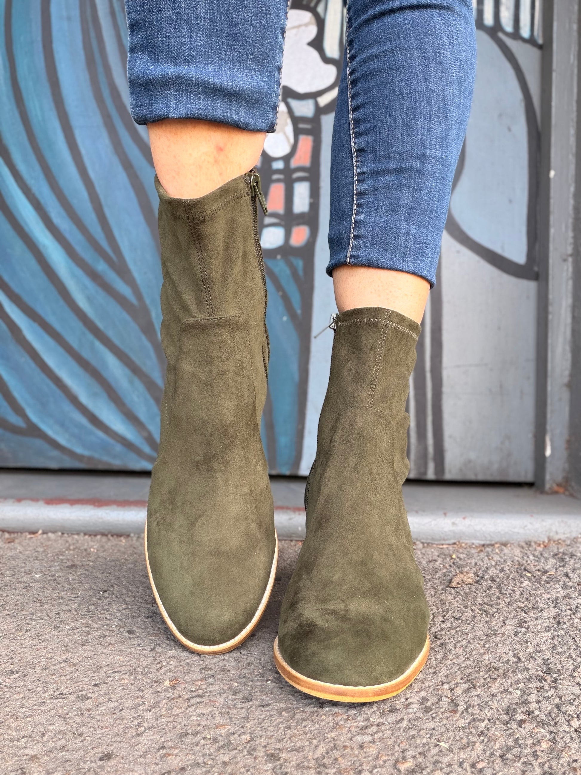 Step into effortless elegance with these stunning olive stretch suede heeled boots. The luxurious suede hugs your foot in all the right ways, while the sleek heel adds instant sophistication to any outfit. Whether you're dressing up for a night out or elevating your everyday look, these boots deliver comfort without compromising on style. The rich olive tone pairs beautifully with everything in your wardrobe, making them the versatile hero piece you didn't know you needed. Slip them on and feel the difference quality craftsmanship makes.